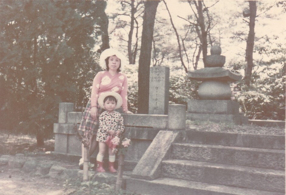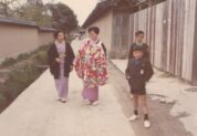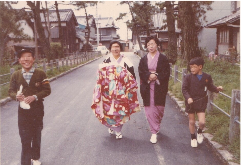 お宮参りなど改まったお祝いの時は、色無地の着物に黒の絵羽織(えばおり)を着た。