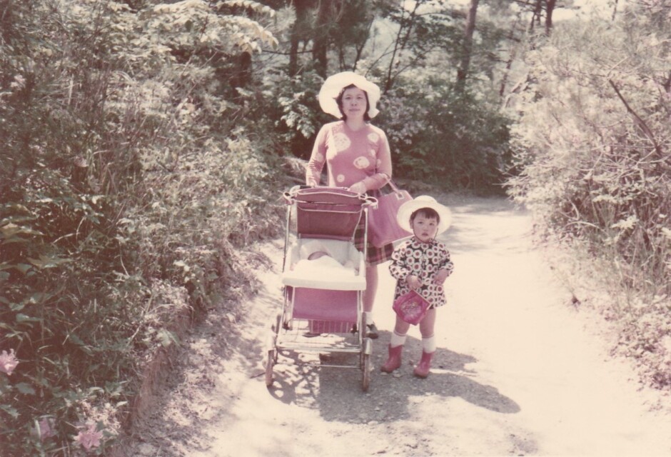 2歳年下の妹をバギーに乗せて一緒に行った。