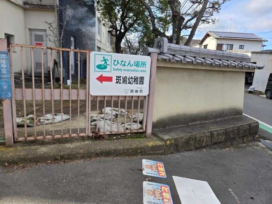 この角を右(南)に入っていくと斑鳩幼稚園。