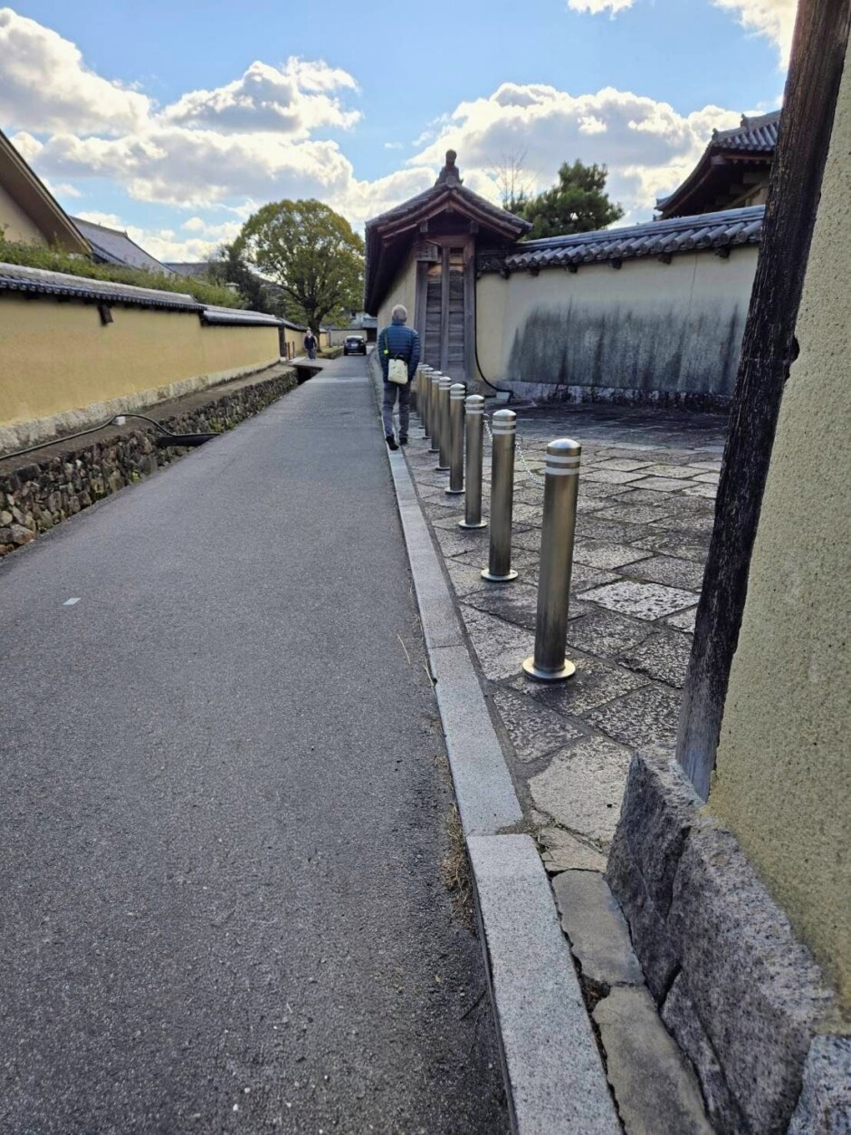 写真右側のブロック塀が斑鳩小学校の北東角。
