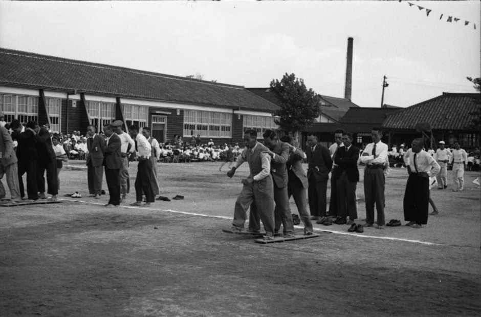 斑鳩小学校の運動会 靴を脱いで出番を待つ
