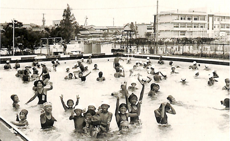 1983(昭和58)年頃、プールが2つあった。東は小学校のプールで西は中学校のプールだった。 西のプールは深くて古かった。高学年にならないと入れなかった。25メートルプールだったと思う。 掃除をしていたらメダカが泳いでいたことがあった。