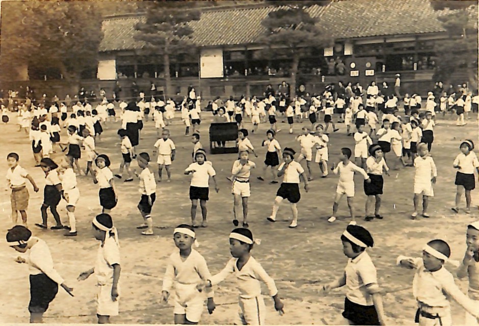 音楽はレコードではなく、先生がオルガンを弾いていた。 1940年代に小学生だった。授業が始まる前に「スイスイ」という遊びを運動場狭しとしていた。学年の分け隔てなく遊び、それが楽しみで学校に通っていた。 写真左奥のクスノキの下がベース基地になっていた。木登りする子もいた。