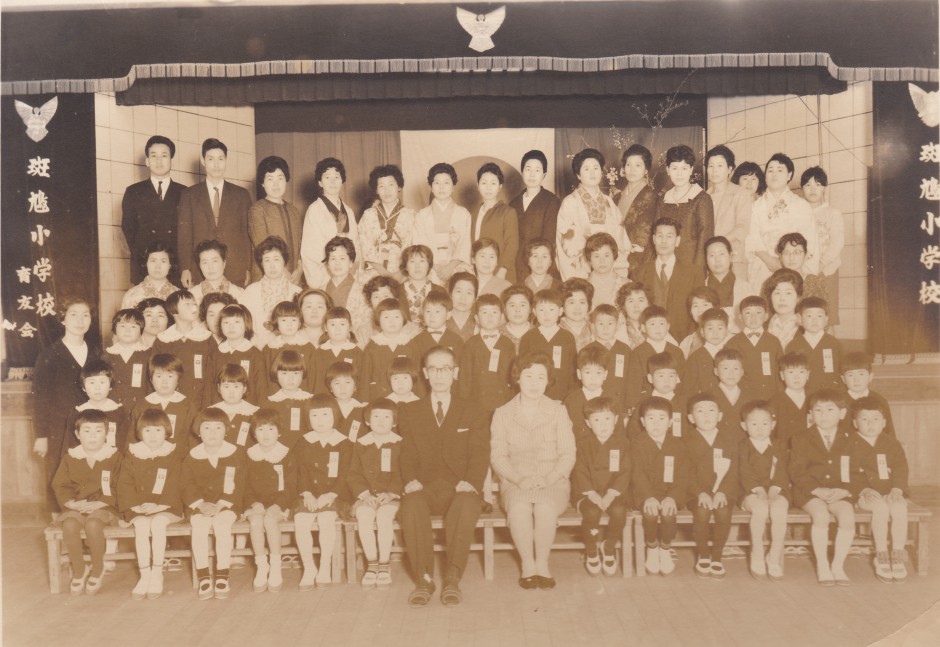 この頃は、親も一緒に写真を撮っていた。講堂の椅子は長椅子だった。 昭和50年頃まで農協の人が講堂に来て、子ども貯金が行われていた(200~500円くらい) 毎月みんなで並んでいたことを覚えている。郵便局か銀行の人が来ていると思っていた。