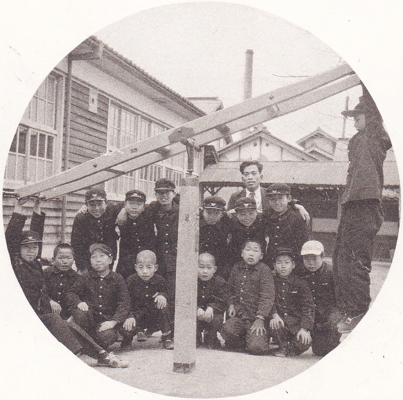 この頃の男の子は小学生でも制服を着ていた。 中学生になると詰襟だが、小学生の制服は襟が立っていないのが一般的だった。 昭和27年頃から靴を履くようになった。それまでは藁草履(わらぞうり)が一般的だった。