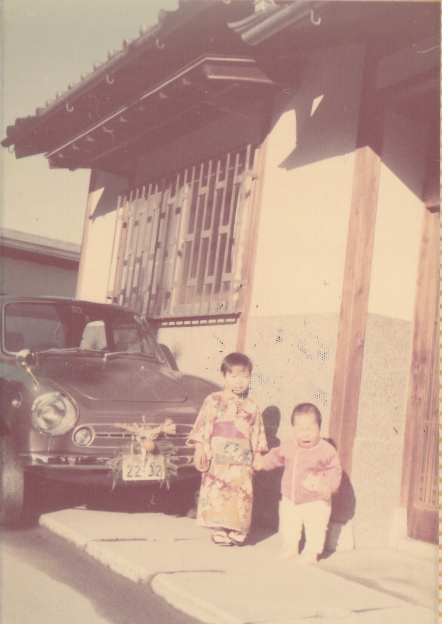 自宅前で妹と。