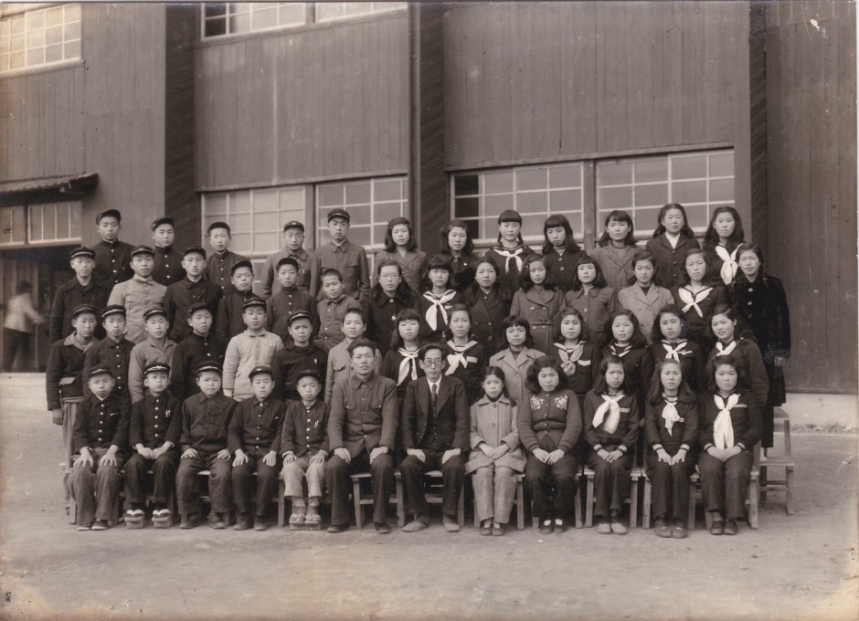 前列のメガネをかけている方が初代校長笹谷良造氏。