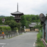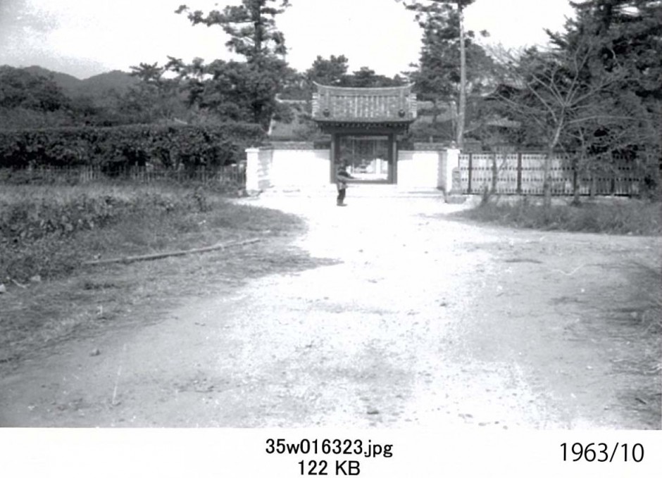 1944(昭和19)年に落雷により三重塔が焼失し、1975(昭和50)年に再建されたので、この時は三重塔がない。 法輪寺前の道(現在町道)は舗装されていない地道。