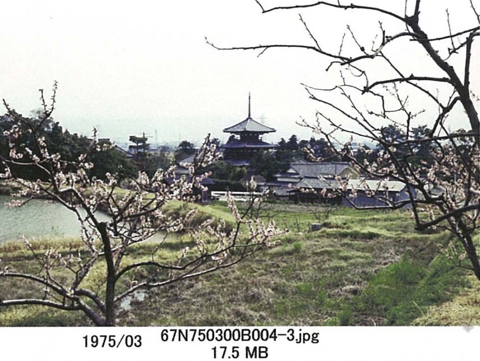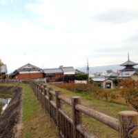 法起寺への道から法隆寺の金堂と五重塔を見る