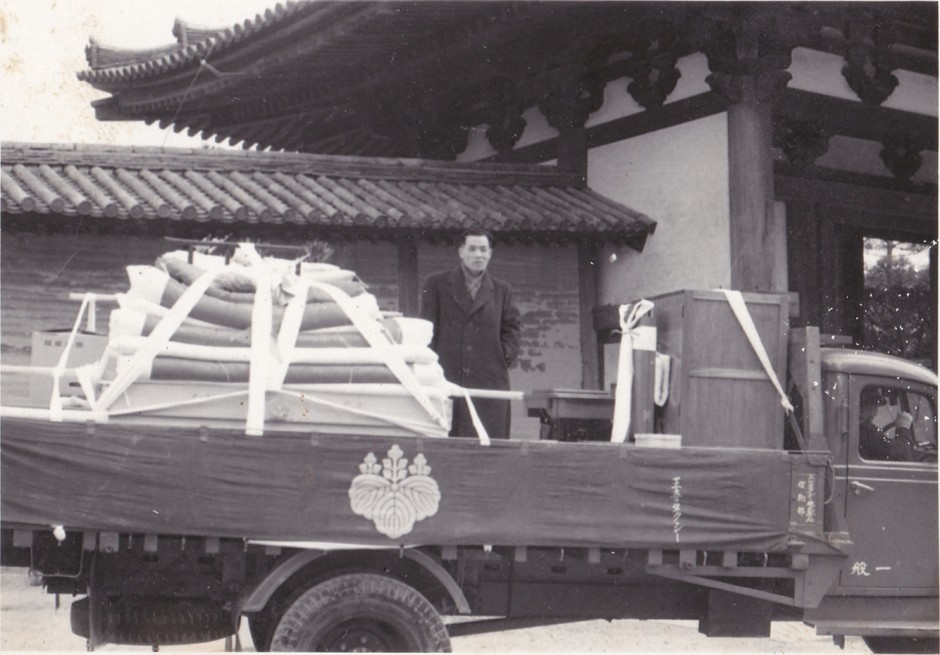 嫁入り道具は「竜田日進運送」のトラックで運んだ。ご近所の方々が荷物を見に出てきて見送ってくれた(川西町から斑鳩に嫁いだ方の話)