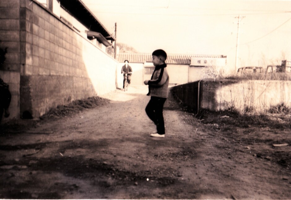 写真右奥に「理容」と見える。現在も同じ位置で営業している。
