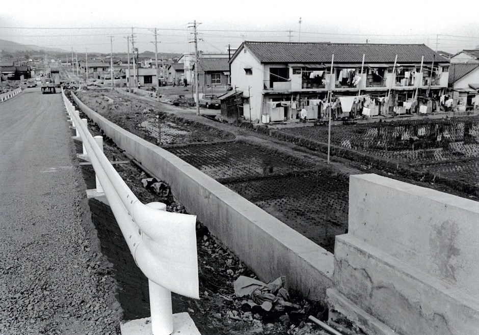 昭和44年(1969年)も跨線橋工事は継続中だった。 高速道路ができたことを契機に引かれた道なので将来の記録に残そうと思って撮影した。