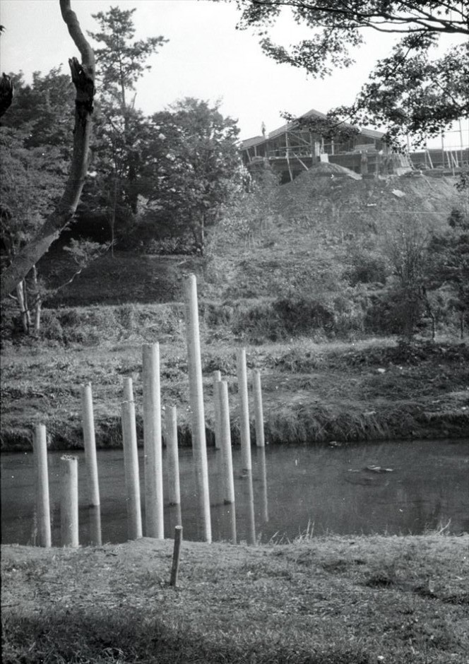 建設中の厚生年金斑鳩荘が見える。