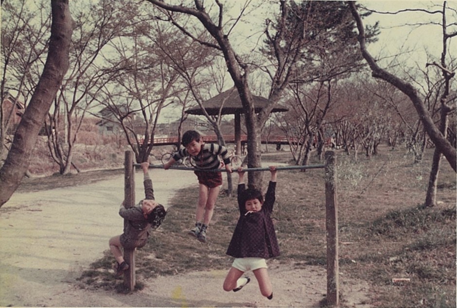 念仏橋上流の公園には鉄棒やブランコがあり、自然に恵まれた恰好の遊び場だった。