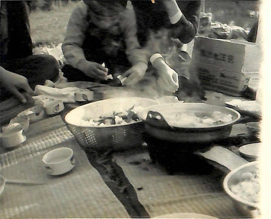 竜田川畔で鍋を囲む