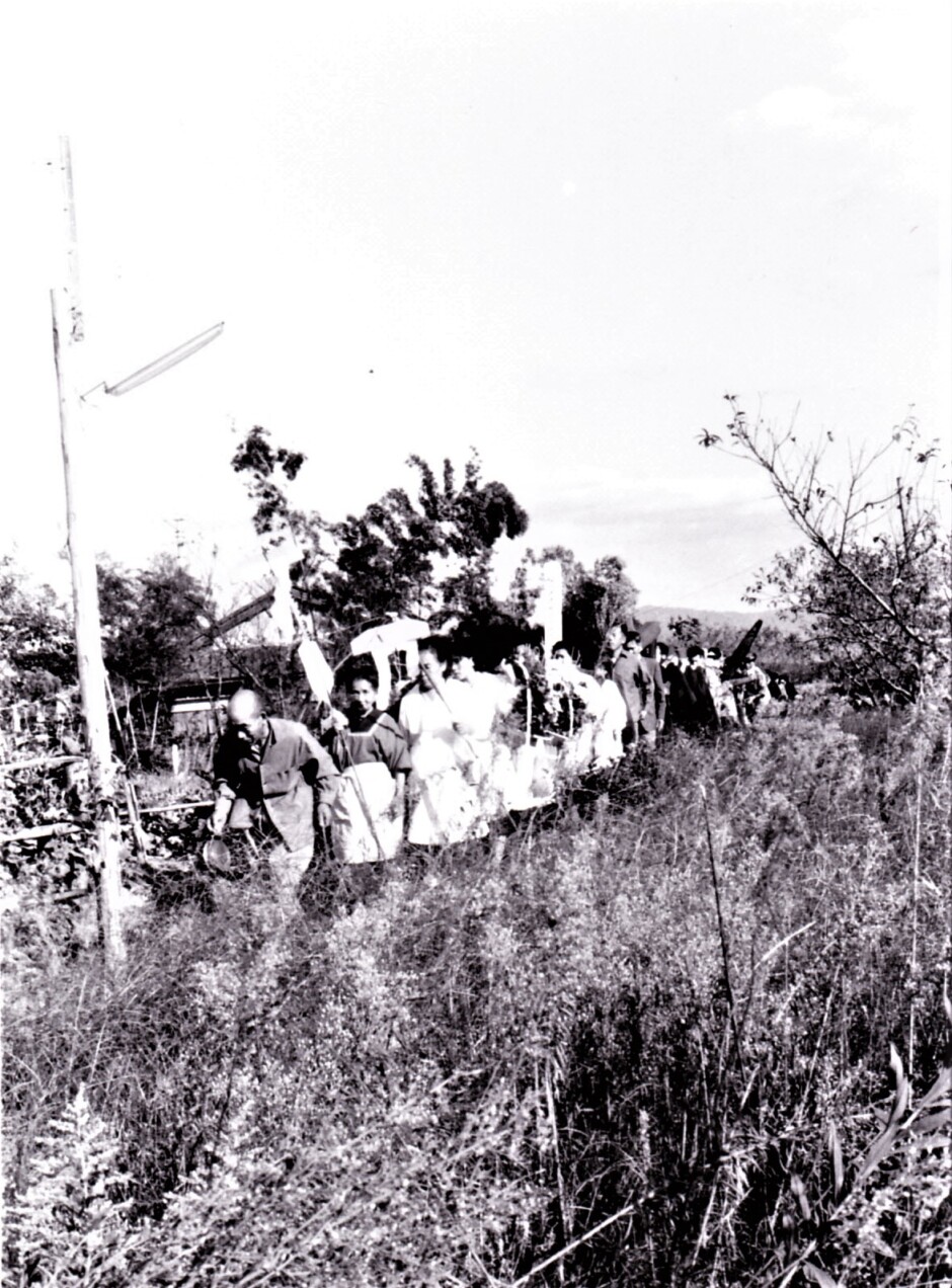 葬列は、垣内の長老が務める「鉦たたき」を先頭に葬連道を進んだ。 どこに家があっても必ずソウレン道の入口まで向かい墓地まで歩いて行くのが決まり。 1968(昭和43)年まで土葬だった。
